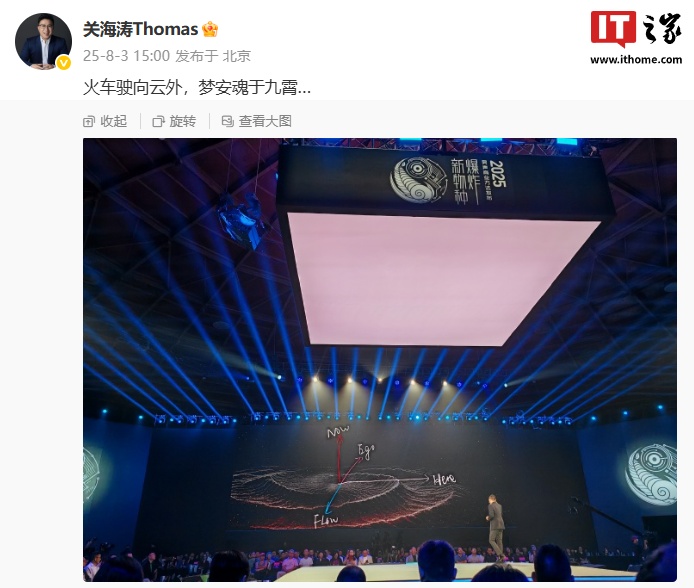 IT之家注意到,关海涛目前最新一条微博的发布时间为今年 8 月 3 日,文案是“火车驶向云外,梦安魂于九霄…”
