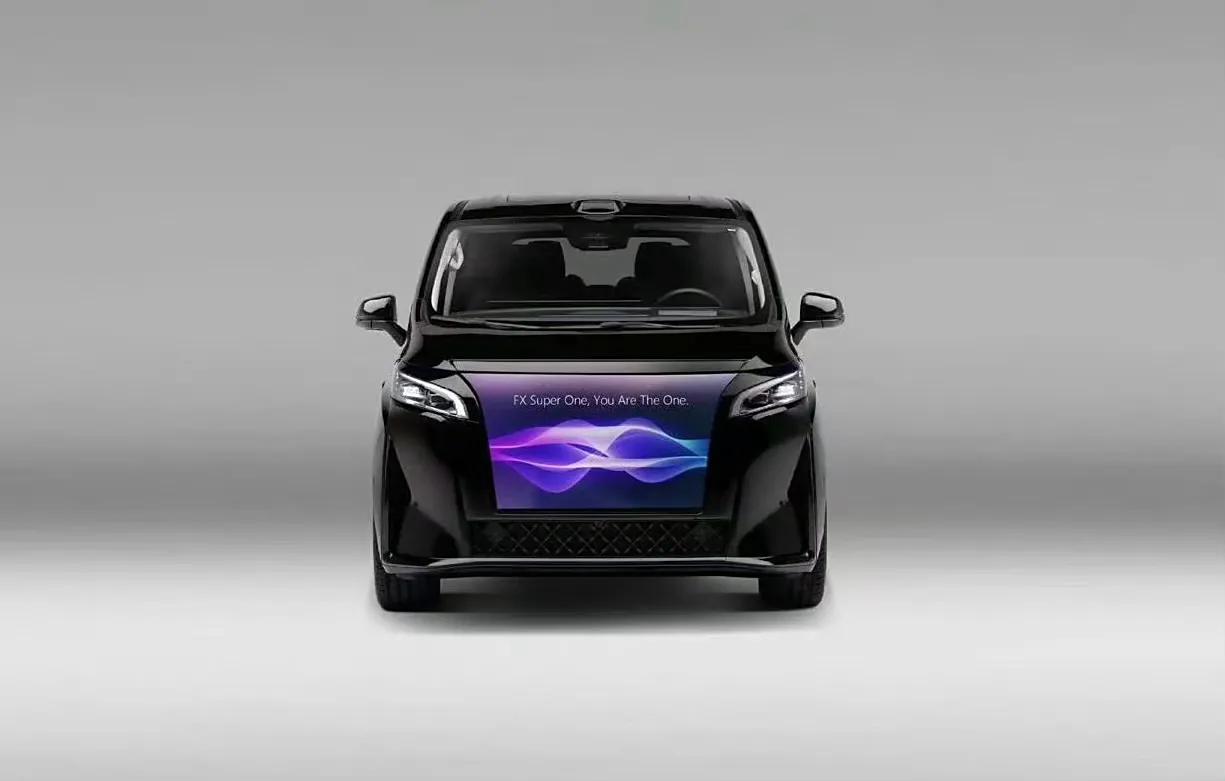 这款概念车有着传统 MPV 的身形,但前脸中网部分并未采用散热格栅设计,而是一整块 LED 显示屏,FF 称之为“Super EAI F.A.C.E.设计”,其中 F.A.C.E 是指 Front AI Communication Ecosystem。