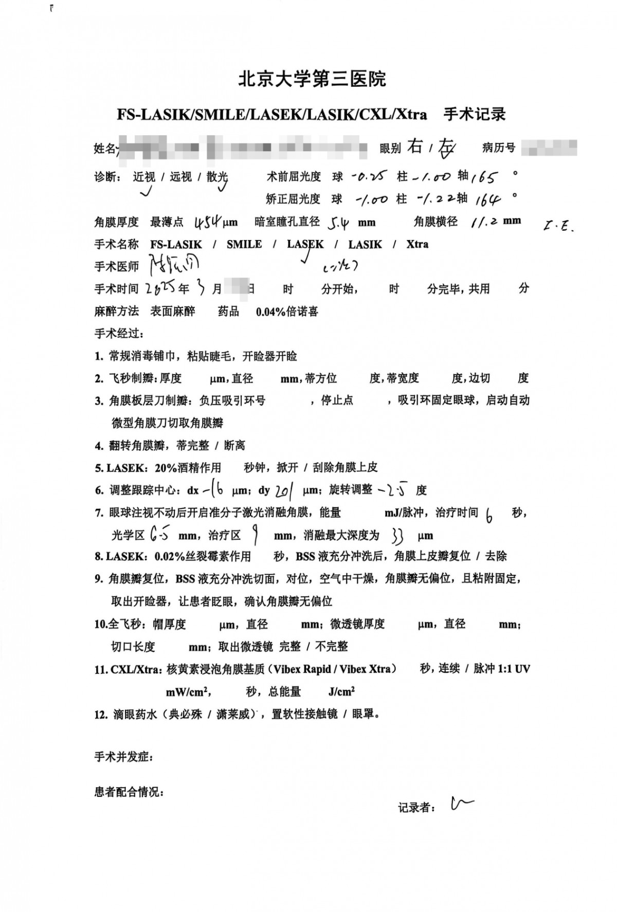 在辗转求医的过程中,北京大学第三医院一位知名专家的诊断让杨先生更为崩溃。该专家明确表示:“你的眼部结构根本不适合做常规全飞秒手术,即便要做,也必须定制个性化手术方案。” 这一结论让杨先生意识到,自己的手术不仅存在风险告知缺失的问题,甚至可能连术前基础适配性评估都存在疏漏。