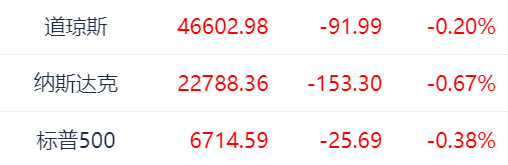 纳斯达克中国金龙指数收跌2.24%,热门中概股普跌,世纪互联跌超6%,万国数据跌超5%,百度跌超4%,阿里巴巴、金山云跌超3%,哔哩哔哩跌近3%,京东、名创优品、理想汽车跌超2%。