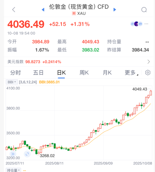 分析师表示:“黄金突破4000美元不只是恐惧情绪,更是资产再配置,在经济数据暂停、降息在望的背景下,实际收益率走低,而重仓AI的股票显得高位偏贵。央行奠定了这波涨势的基础,但接下来是散户与ETF在驱动下一阶段。”