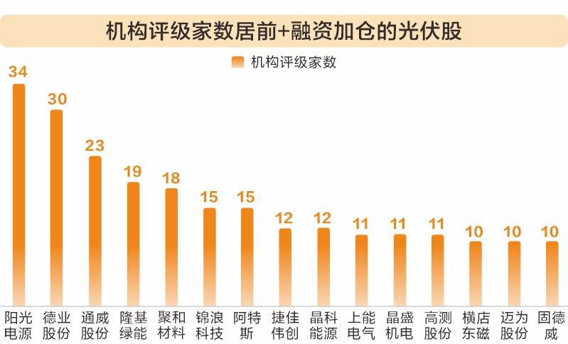 融资资金加仓股普遍获得机构高度关注,净买入金额超1亿元的22股中,15股获得10家及以上机构关注,占比超过三分之二,阳光电源、德业股份、通威股份机构关注家数居前,分别为34家、30家、23家。
