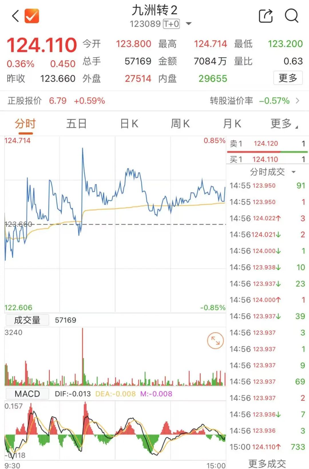 九洲集团关于九洲转2即将停止交易暨最后一个交易日的重大提示公告显示,九洲转2将于10月10日停止交易,于10月15日停止转股。10月14日收市后,仍未转股的“九洲转2”将按照102.04元/张的价格强制赎回。