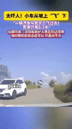 目击者洪先生告诉记者,这是一起单车事故,这辆车突然从坡上飞下,最高点距离地面4米左右,轿车落地后撞到地面一广告牌停下 ,车上人员被困。10月8日,记者从当地交警部门接线员处获悉,民警正在处理该事故,车上人员没有生命危险。关于事故发生的原因,接线员表示不清楚。