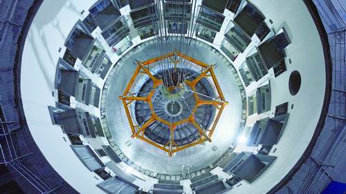 BEST建设现场,杜瓦底座成功落位安装(无人机照片)。蔡其敏/摄