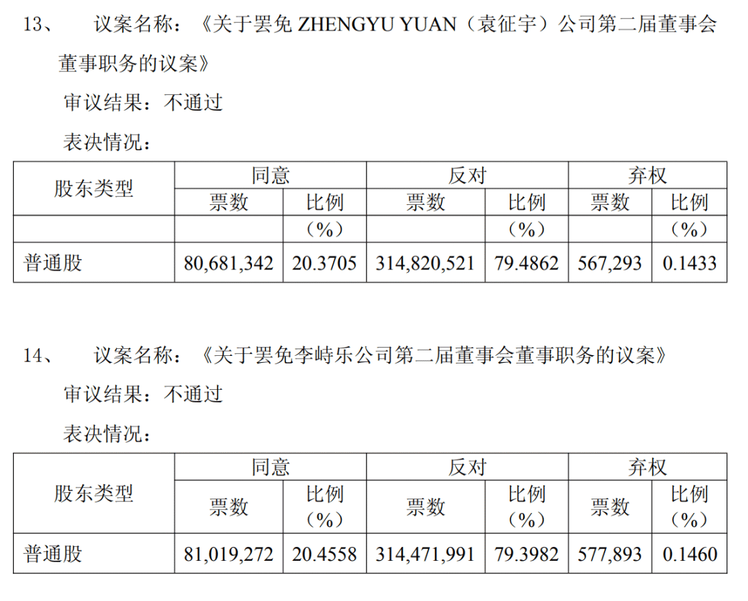 与此形成鲜明对比的是,由此前第一大股东Genie Pharma提出的罢免董事长袁征宇等三名董事的议案均遭否决,反对票比例接近80%。其提名的三名董事候选人也全部落选。