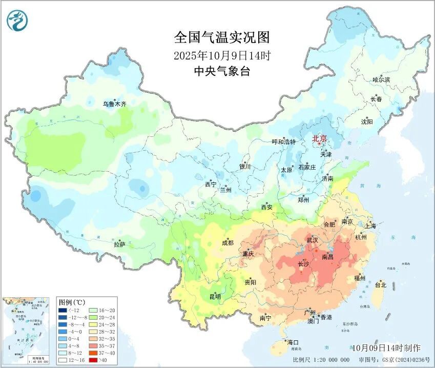 就在北方“湿冷如冬”的同时,南方却陷入一场“火力全开”的十月高温。截至今天14时,全国高温排行榜前十被湖南、江西、湖北站点包揽,部分站点体感温度超40℃。城市中,今天,武汉、南昌、重庆、长沙都出现高温,均刷新了各自的最晚高温日纪录。