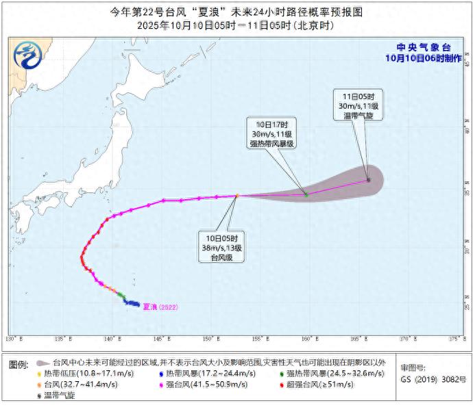 预计,“夏浪”将以每小时50-55公里的速度向偏东方向快速移动,将逐渐变性为温带气旋。未来“夏浪”对我国海域无影响。