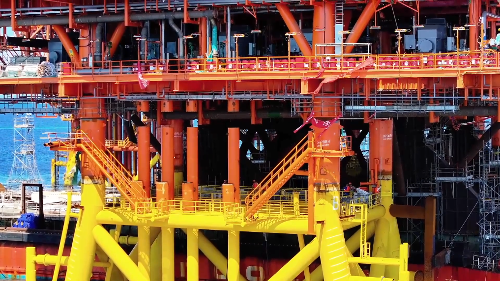 惠州25-8B钻采平台上部组块与导管架“底座”之间共有16个连接处,焊接工作人员历时约48小时,使用超过232公里长的焊材,完成平台安装连接的全部焊接工作。