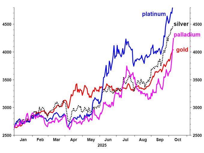 今年黄金的涨势可谓令人瞩目,但若放眼整个贵金属市场,白银和铂金其实正引领着更为广泛的实物资产抢购热潮。