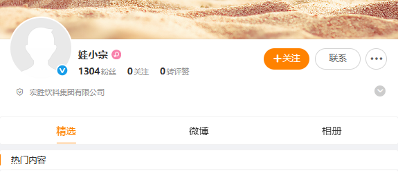 今日,“娃小宗”微博账号完成平台认证,认证主体为宏胜饮料集团有限公司。该账号的审核通过时间为9月30日,截至10月11日,粉丝数为1304,且暂未发布任何内容。