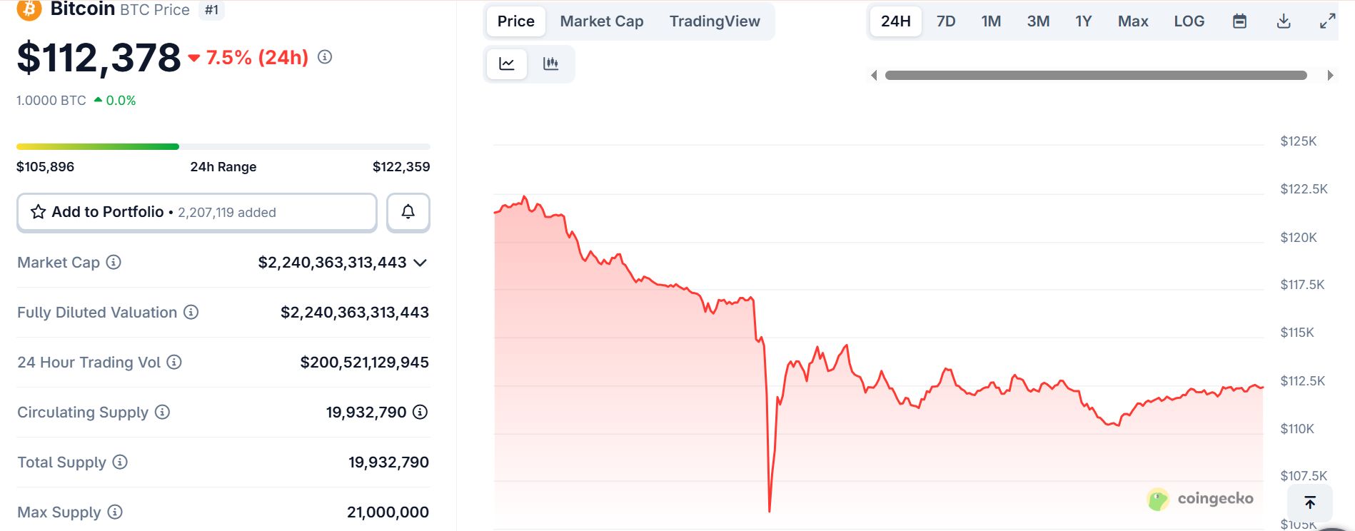 截至发稿,比特币价格回到约11.2万美元附近,24小时跌幅收窄至7.5%左右。尽管短线技术面出现超跌反弹迹象,市场情绪已从此前的贪婪看多转向谨慎观望。