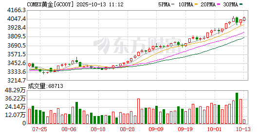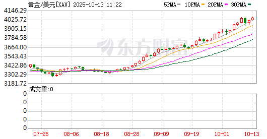 截至发稿,现货黄金涨超0.8%,突破4050美元/盎司,盘中一度触及4060美元,COMEX黄金涨超1.7%,也突破4070美元/盎司。