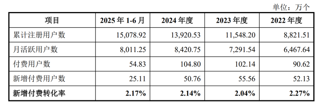企查查招股书显示,近年来,企查查的用户数稳定增长,从2022年的0.88亿增长至2025年上半年的1.5亿;月活用户数从2022年的6468万增长至2025年上半年的8011万;2024年付费用户数达104.80万,2025年上半年达54.83万;每付费用户平均收入2024年为597.41元,2025年上半年为624.01元。