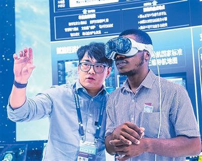 在浙江杭州举行的第四届全球数字贸易博览会上,外商进行低空经济MR交互体验。