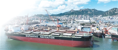 山东省荣成市石岛管理区修造船基地,船坞内外停满了海内外各类大型船舶。