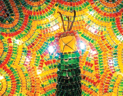 四川自贡是中国首批十三个国家文化出口基地之一。图为当地制作的彩灯“孔雀开屏”。