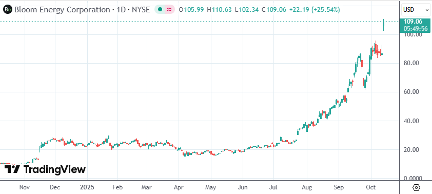 周一(10月13日)美股盘前,美国燃料电池公司Bloom Energy股价一度涨超35%,因公司与Brookfield达成了一项价值50亿美元的战略AI基础设施合作伙伴关系。