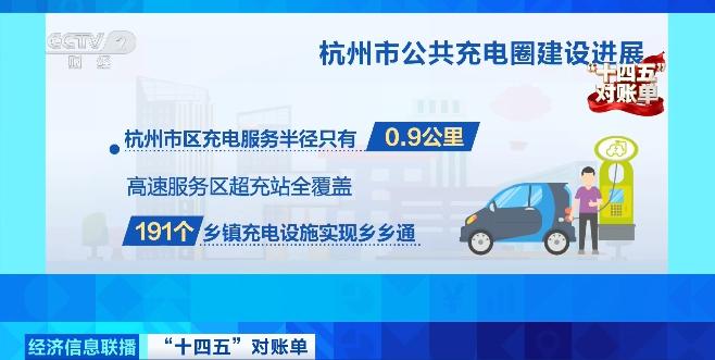 “十四五”时期,杭州全市建成了公共充电圈,市区充电服务半径只有0.9公里,高速服务区超充站全覆盖,191个乡镇充电设施实现乡乡通。商场、酒店、高速服务区,几乎有停车场的地方就有充电站。