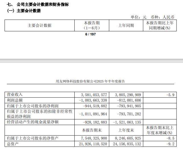 用友网络官网介绍,用友创立于1988年,公司致力于应用以AI、大数据、云计算为核心技术的企业数智化软件与智能服务的研发创新、销售与服务。37年来,公司持续引领企业软件与服务产业发展,产品包括财务云、人力云、营销云、敏捷供应链等。其半年报显示,报告期内,公司实现营业总收入35.81亿元,归母净利润-9.45亿元。