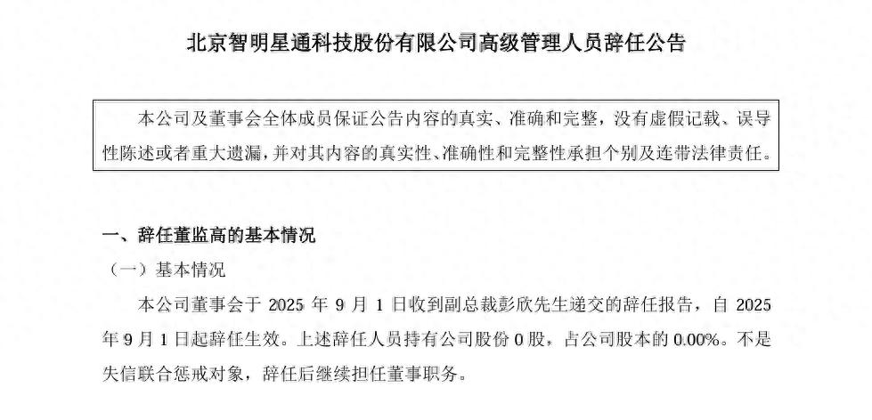 根据10月13日智明星通发布的决议公告,公司董事会决定停止张磊先生总裁职务,其相关工作由公司董事会接管。张磊的停职不会对公司生产经营产生重大不利影响。实际上,就在一个月前,公司高管彭欣刚辞任副总裁一职。