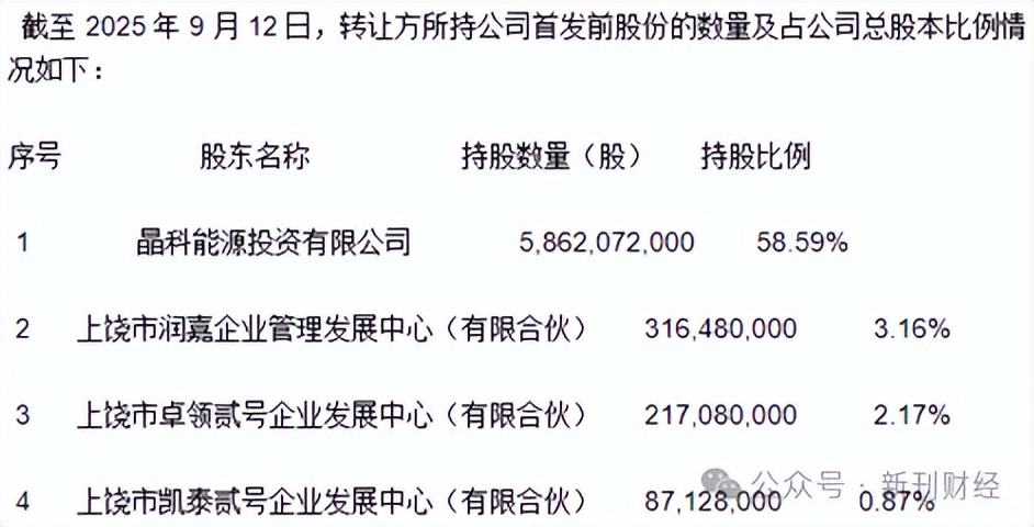 上饶润嘉是晶科能源的控股股东,也是晶科能源投资的一致行动人,由晶科能源实际控制人李仙德、陈康平、和李仙华共同控制,属于其家族关联企业。晶科能源投资、上饶润嘉、上饶卓领贰号、以及上饶凯泰贰号在本次减持前,合计持有晶科能源68.93%的股份。