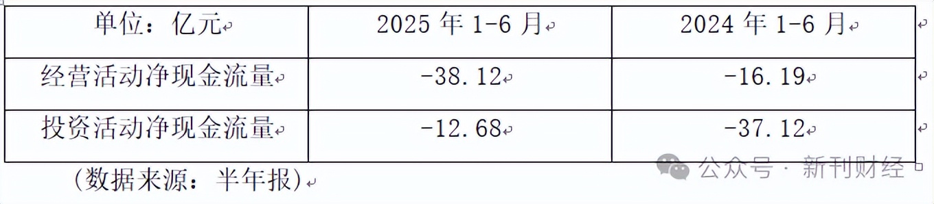 由于主营业务造血能力下降,叠加对外投资的巨额资金需求,今年上半年晶科能源经营活动净现金流量再度亮起红灯,净流出缺口从-16.19亿元扩大到-38.12亿元。