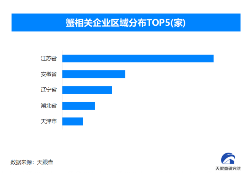 天眼查专业版数据显示,截至目前我国现存在业、存续状态的蟹相关企业超2.1万家。从区域分布来看,江苏省蟹相关企业数量位居首位,以超6900余家的相关企业数量,占全国总数的32.48%。排在其后的安徽省和辽宁省分别拥有相关企业超2800余家和2200余家。
