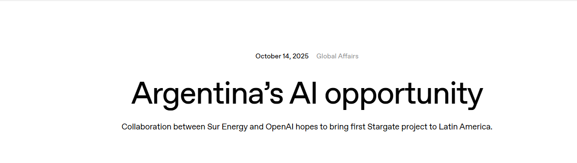 据悉,OpenAI和Sur Energy已签署了一份合作意向书,该项目将纳入阿根廷的 “大型投资激励制度” 框架内,这是一个旨在吸引大规模国际投资的计划。