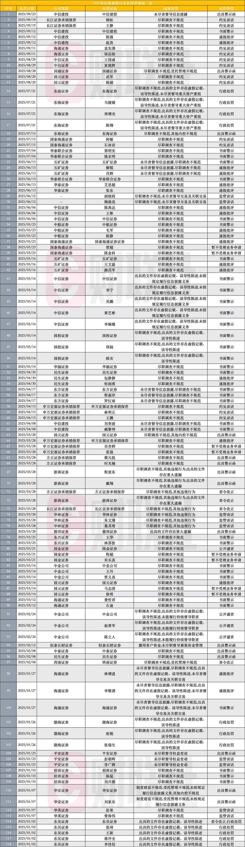 年内已现118张投行罚单