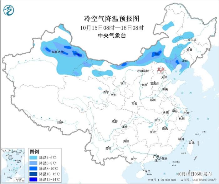 最后关注较强冷空气带来的大风降温天气,该冷空气影响范围广、持续时间长。预计15日至19日,冷空气将自西向东、自北向南影响我国大部地区,上述地区将有4~6级风,阵风7~9级,新疆山口风力10~11级;日平均气温普遍下降4~8℃,其中内蒙古中西部、华北北部、东北地区南部及湖南、贵州等地部分地区降温10℃以上。