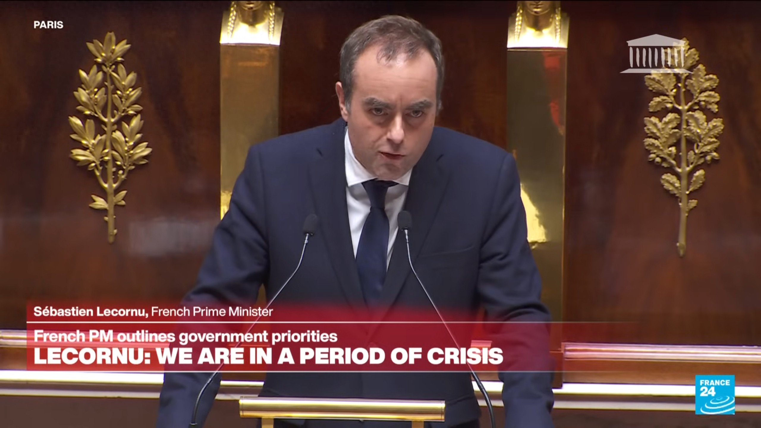 当地时间10月14日,法国总理勒科尔尼向法国国民议会发表演讲。 视频截图
