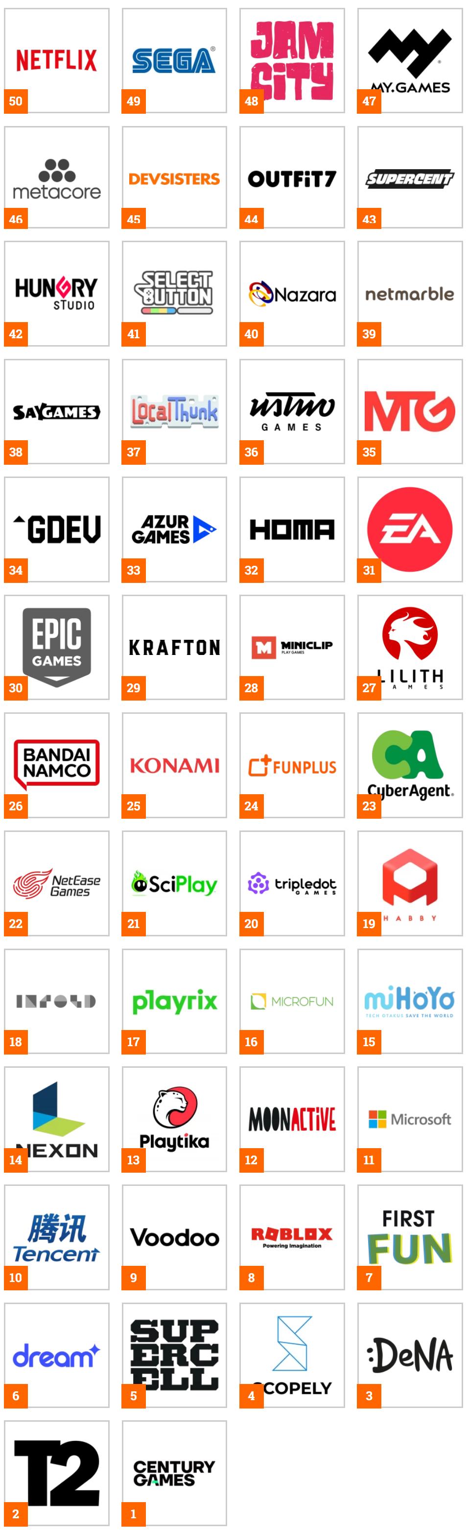 英国老牌游戏媒体 PocketGamer 上周发布了 2025 年手游厂商 50 强榜单。