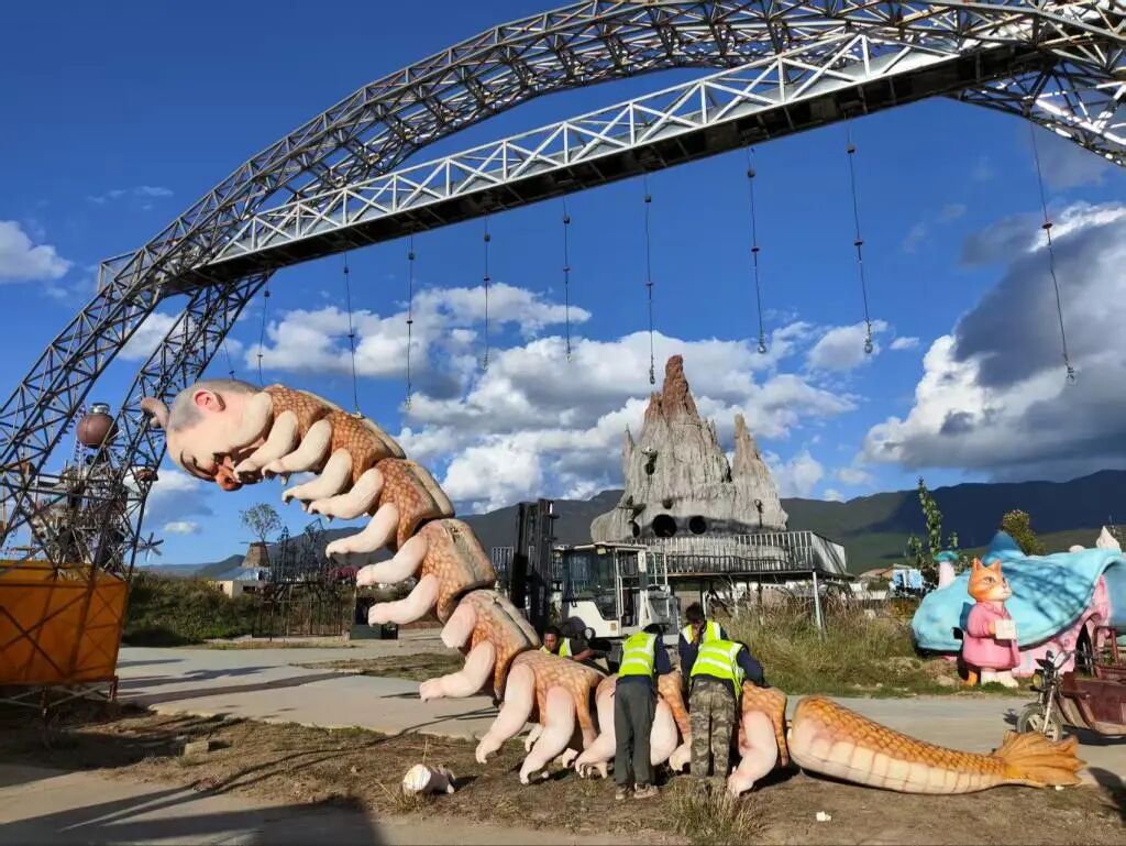 近日,云南丽江“荒野之国”艺术园内“人体蜈蚣”“三面女孩”等雕塑,被指造型诡异,让人产生不适。