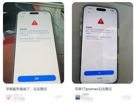 自10月13日晚开始,多地大量用户反映,其新购买的iPhone 17及iPhone 17 Pro Max无法激活,这一问题持续至14日上午仍未得到解决,在社交媒体上引发关注。