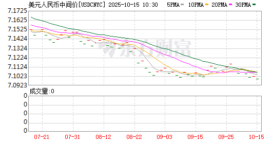 10月15日早上,人民币兑美元中间价报7.0995,上调26点;上一交易日中间价7.1021,上一交易日官方收盘价7.1411,上日夜盘报收7.1380。受此提振,离岸人民币兑美元直线拉升超100点。