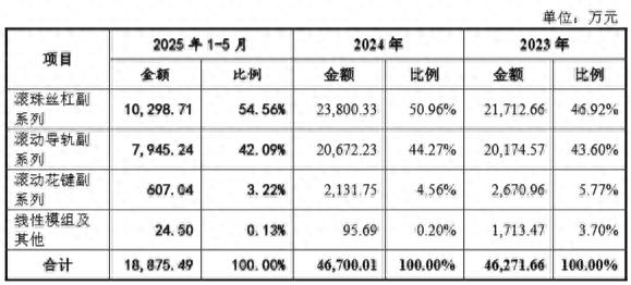 目前,南京工艺主力产品滚珠丝杠副系列收入占比逐年攀升,从2023年的46.92%增长至54.56%,滚动导轨副系列收入占比基本稳定,这两类产品收入占比超过九成。