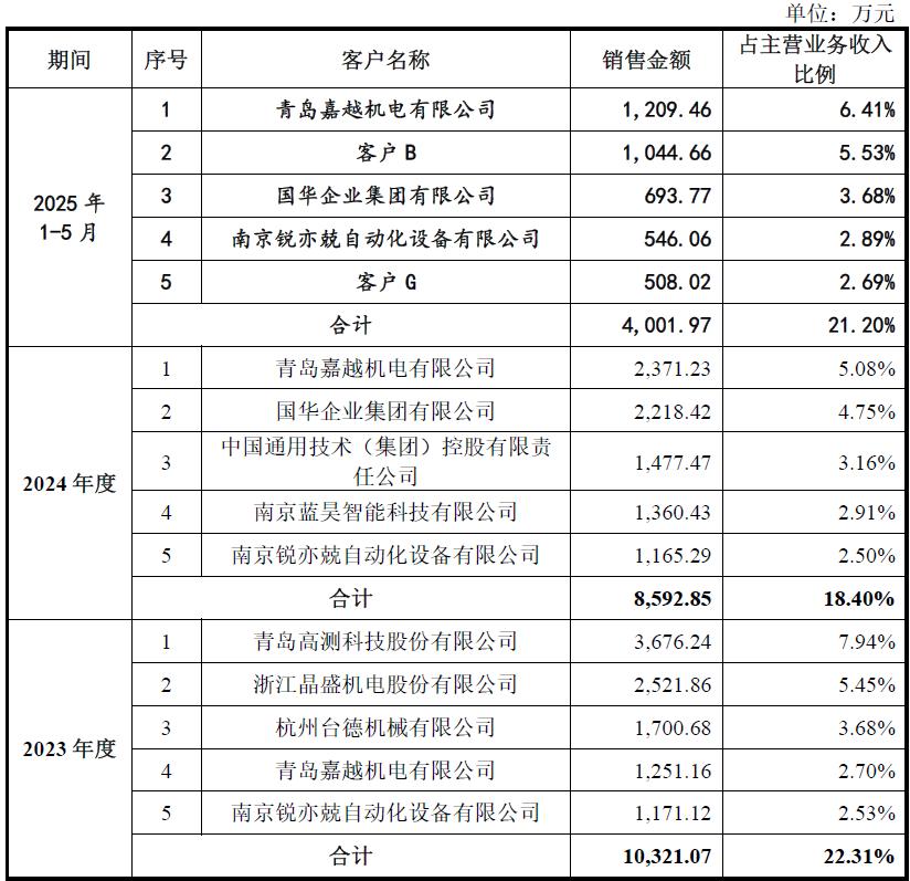 其中,嘉越机电在2023年为南京工艺第四大客户,在2024年和2025年前5月均为公司第一大客户。南京工艺的客户可分为直销和经销两类,嘉越机电属于经销客户。