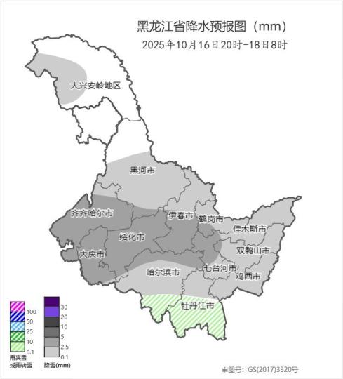 黑龙江省2025年10月16日20时至18日8时累计降水量预报图。 黑龙江省气象局供图