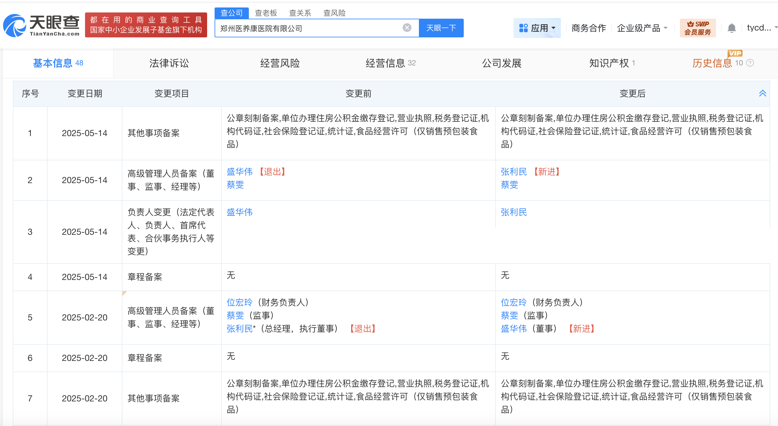 据媒体报道,沈阳一名确诊脑胶质瘤的16岁女孩,经短视频引流治疗后12天去世。记者发现,该机构并无肿瘤治疗资质,且高端仪器显示为“超声治疗仪”。天眼查App显示,涉事的郑州医养康医院有限公司成立于2023年3月,法定代表人为张利民,注册资本1000万人民币,经营范围包括医疗美容服务、医疗服务、药品零售、中医养生保健服务(非医疗)等。股东信息显示,该公司由河南省医养康健康产业集团有限公司全资持股。变更记录显示,今年2月,张利民卸任该公司法定代表人、总经理、执行董事,由盛华伟任法定代表人、董事;今年5月,盛华伟卸任上述职务,由张利民接任。