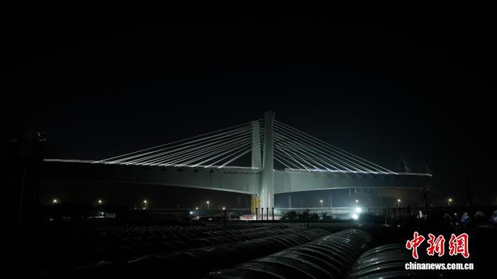 当日凌晨,在两台液压连续张拉千斤顶持续精准牵引“发力”下,由广州地铁集团负责建设管理、中铁广投总承包管理、中铁广州局承建的广佛西环城际官窑西南涌特大桥(124+230+124)米斜拉桥犹如空中“芭蕾舞者”平稳旋转,顺利转体跨越广珠铁路、广佛肇高速公路等重要建构筑物。