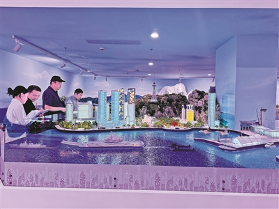 游客在科技馆内观赏“连接世界的旅程”沙盘。