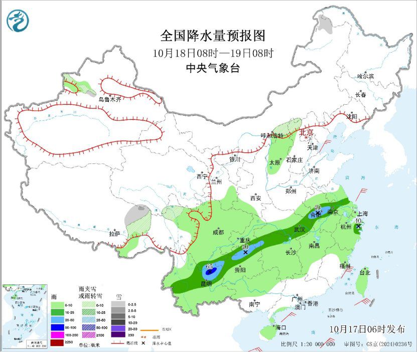 预计17-22日,较强冷空气将连续扩散南下,中东部地区气温将下降6~10℃,其中,华北中东部、黄淮中西部、江淮西部、江汉西部、江南北部和西部、华南北部、贵州等地部分地区降温10~12℃,局地超过14℃;过程最低气温0℃线将南压到华北北部至陕西北部、甘肃东部一带,大部地区将出现今年下半年以来最低气温。