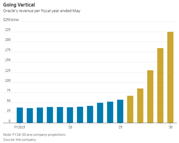 股价走势表明,投资者在周四的演示中似乎听到了他们不喜欢的内容——尽管甲骨文高管们在演讲中分享了2030财年的收入和每股收益目标,分别高达2250亿美元和21美元,均预示着本十年剩余时间将实现大幅增长。