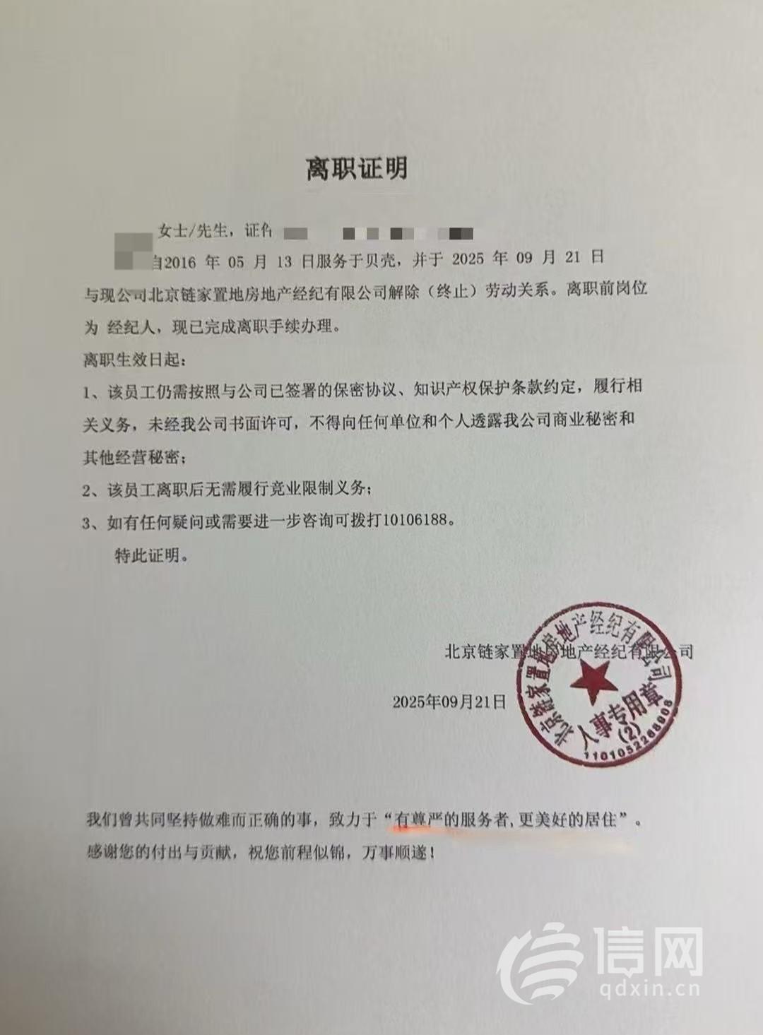 李先生称,自己2014年开始在北京链家工作, 2024年底离开时,却被一纸证明难住了。