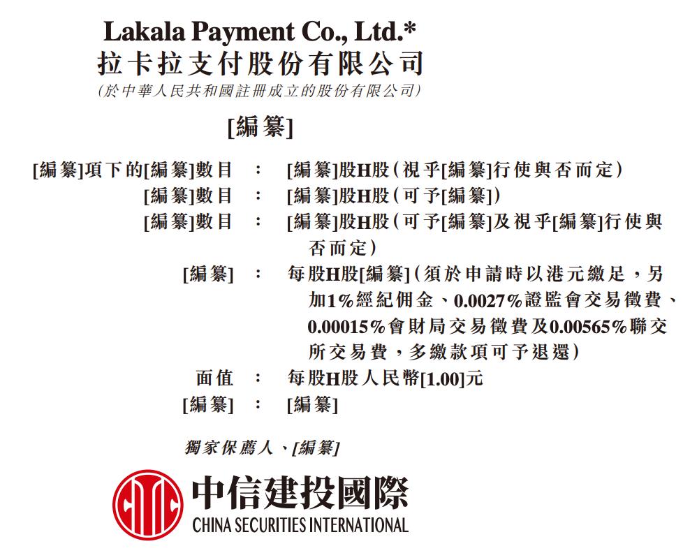 港交所10月17日披露,拉卡拉支付股份有限公司(简称:拉卡拉)向港交所主板提交上市申请书,中信建投国际为独家保荐人。