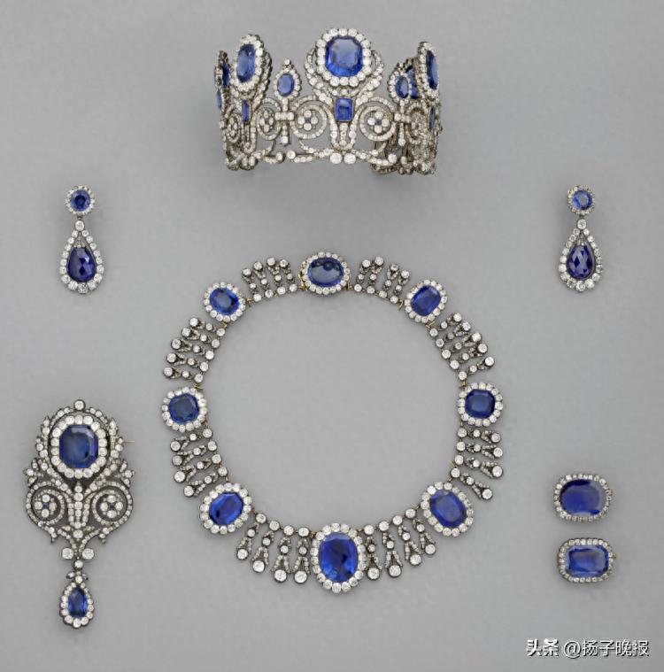 玛丽-阿梅莉王后与奥尔唐斯王后的冠冕、蓝宝石项链及蓝宝石耳环 资料图