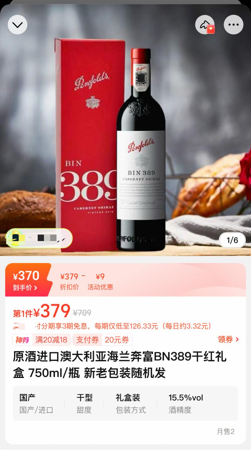 根据连先生提供相关截图显示,该连锁便利店(新开河店)在展示相关产品时,并未明确产品为“奔富海兰”而是直接标称为“奔富”,在展示图片中还将奔富bin 389设为商品首页,奔富海兰bn 389图片则是藏在其中。他认为,这家店铺存在“挂羊头卖狗肉”“误导消费者”等嫌疑。