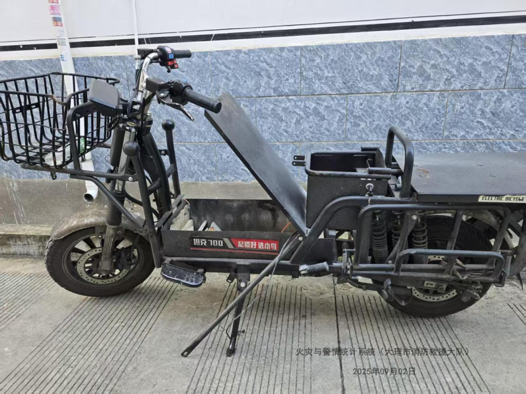 火灾案例:2025年9月2日,大理州大理市文献路418号一电动车发生火灾,未造成人员伤亡,起火原因系道路停放的电动自行车蓄电池故障引发火灾,起火车辆为超标电动自行车,品牌为如森,蓄电池品牌为星恒。