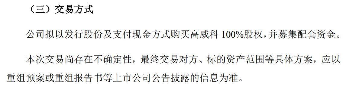 目前,该笔交易尚处于筹划阶段,东土科技正在与高威科各股东接洽,最终交易对方以公司与标的公司各股东洽谈的情况为准。据悉,此次交易初步确定的交易对方包括高威科实控人张浔、刘新平及其他股东在内的全部43名股东。